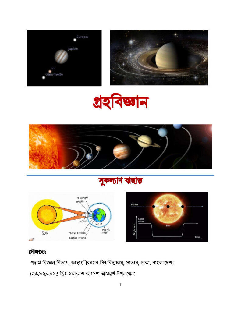 আকাশের অশেষ নীলাভ পটভূমিতে ছোট ছোট নক্ষত্র জ্বলজ্বল করছে, আর প্রতিটি নক্ষত্রের চারপাশে মিলিয়ন মিলিয়ন গ্রহ—একটি বিশাল মহাকাশ রূপকথার মতো। আমরা আমাদের চোখ উঁচু করে তাকাই, শুধু তারা নয়, বরং সেই অজানা জগৎ—গ্রহ, উপগ্রহ, ধূমকেতু এবং সৌরজগতের অসংখ্য রহস্য— অন্বেষণ করি। এই বইটি সেই অবগাহনের পথে আমাদের হাত ধরার জন্য লেখা, যেখানে পাঠক ধীরে ধীরে শিখবে কিভাবে প্রাচীন জ্যোতির্বিদ্যা থেকে শুরু করে আধুনিক মহাকাশ প্রযুক্তি পর্যন্ত, মানুষের জ্ঞান এবং কৌতূহল ধীরে ধীরে সৌরজগতকে উন্মোচন করেছে।