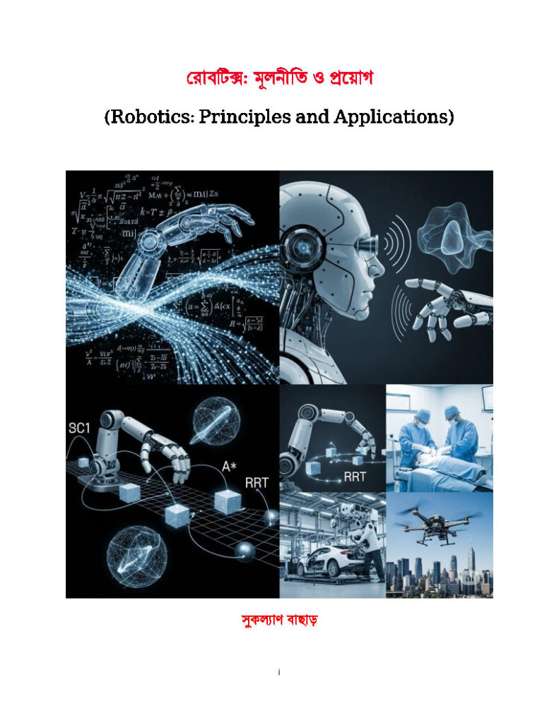 এই বইটি, "রোবটিক্স: মূলনীতি ও প্রয়োগ", রোবটিক্স নামক এই বিস্তৃত ক্ষেত্রটির একটি সুসংগঠিত এবং শিক্ষার্থীবান্ধব উপস্থাপন। বইটির উদ্দেশ্য হলো পাঠককে রোবটিক্সের মূল ভিত্তি থেকে শুরু করে এর উন্নত ধারণা এবং বাস্তব প্রয়োগ সম্পর্কে একটি সুস্পষ্ট ধারণা দেওয়া। প্রথম ভাগে, আমরা রোবটিক্সের মৌলিক ভিত্তির গভীরে প্রবেশ করব। এখানে রোবটিক্সের সংক্ষিপ্ত ইতিহাস, রোবটের শ্রেণীবিভাগ, এবং একটি রোবটিক সিস্টেমের মূল উপাদানগুলো নিয়ে আলোচনা করা হয়েছে। এই অংশের সবচেয়ে গুরুত্বপূর্ণ দিক হলো গাণিতিক প্রাথমিক ধারণা, যেমন ভেক্টর, ম্যাট্রিক্স, এবং রূপান্তর, যা রোবট কিনেম্যাটিক্স ও ডাইনামিক্স বোঝার জন্য অপরিহার্য। এরপর, ফরোয়ার্ড ও ইনভার্স কিনেম্যাটিক্স এবং রোবট ডাইনামিক্স-এর মতো জটিল বিষয়গুলো ধাপে ধাপে ব্যাখ্যা করা হয়েছে।